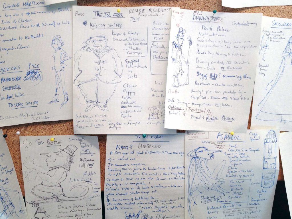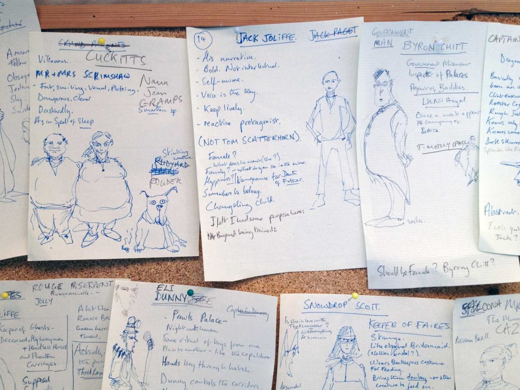 Hello! Just confirming that I am still alive after all. In amongst many other things for the last nine months or so I have been writing another young adult novel. I think its finished … but I can’t say too much about it, I don’t even have a title. all I know is that it’s big, it’s funny and it’s set in a parallel present. Actually I’m very excited about it. Here are a few sketches of the characters that have been pinned to my wall. Every time I forgot who someone was or how they spoke I glanced at up at this. I am hoping to be less obscure very soon…